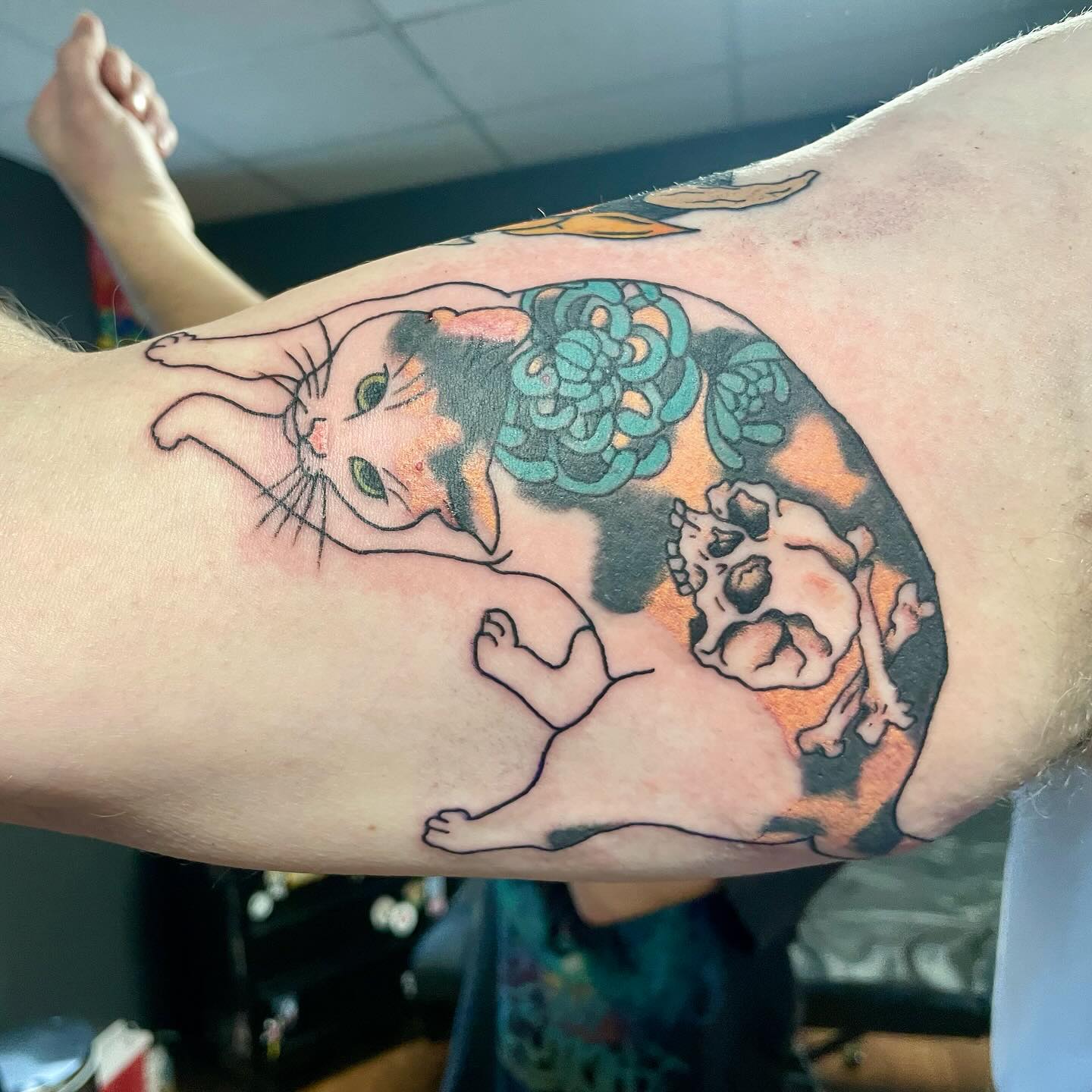 Rena is the co-founder of Three Tears Tattoo Parlor. She has been tattooing alongside Ryan for over 3 years now. As a newer artist in the industry Rena tattoos in a multitude of styles but particularly enjoys traditional/neo American and Japanese work and especially enjoys working in color.