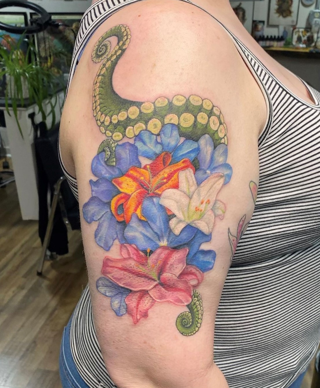 Alexius (a.k.a. Lapey Lou) works primarily in realism, portraiture and water color styles. As a custom tattoo artist Alexius jumps on the opportunity to do pet portraits, floral pieces and anything nerdy/fantasy related. Schedule an appointment with Alexius directly at www.lapeyloutattoo.com.